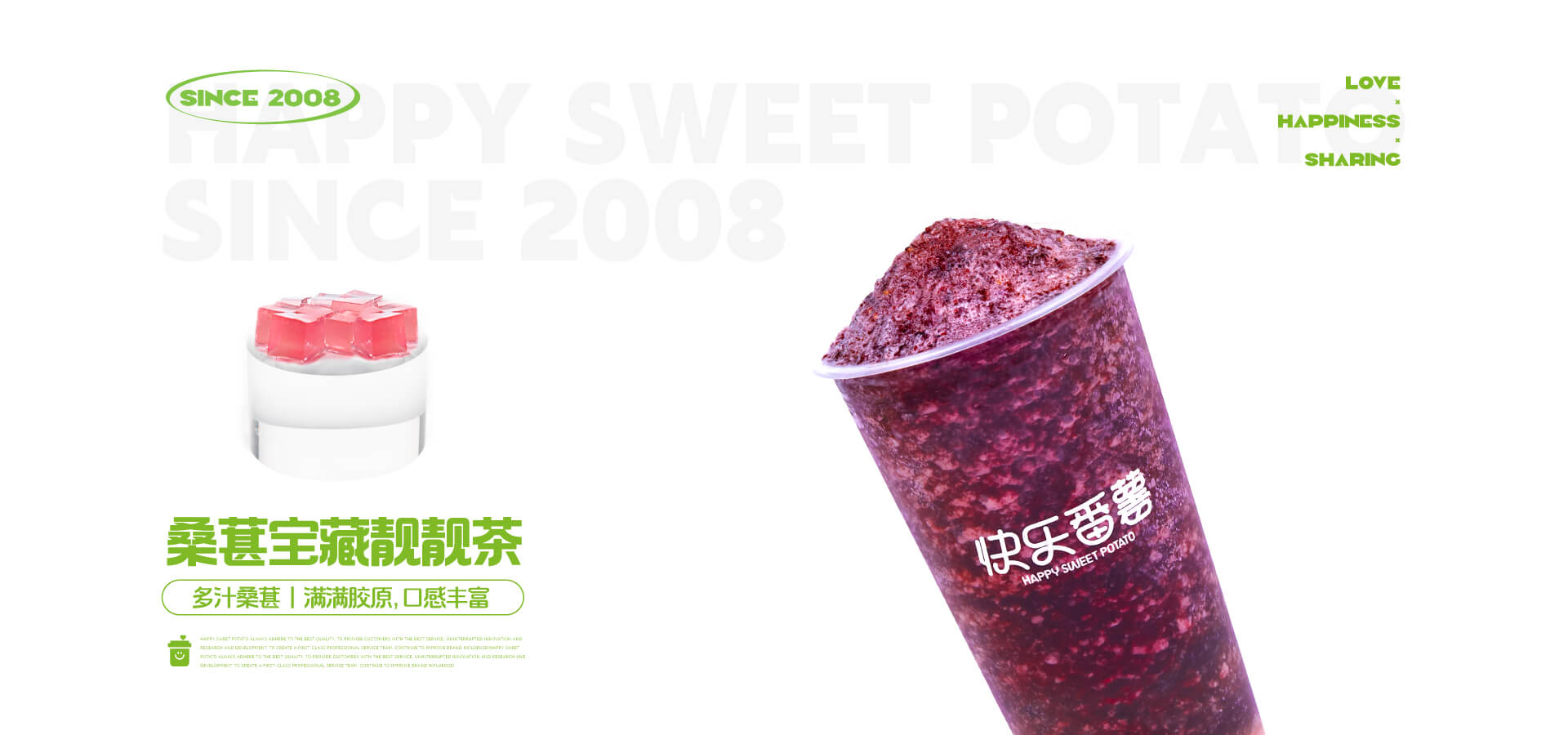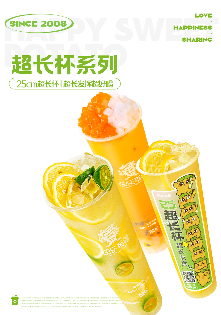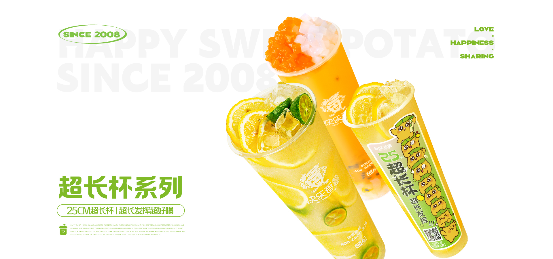 快樂番薯是廈門快樂番薯股份有限公司旗下的奶茶品牌,起源于福建廈門,專業從事番薯、奶茶、水果茶、輕食的研發與銷售,把茶與番薯巧妙地融合在一起,獨創的招牌薯圓系列奶茶,以其軟糯香甜深受廣大消費者喜愛。經過十多年的發展,快樂番薯已在全國28個省區扎根,加盟店遍布223個城市。同時快樂番薯還提出并牽頭制定福建省連鎖協會團體標準——《現制奶茶》和《現制奶茶操作規范》,鼎力促進奶茶行業的健康發展!